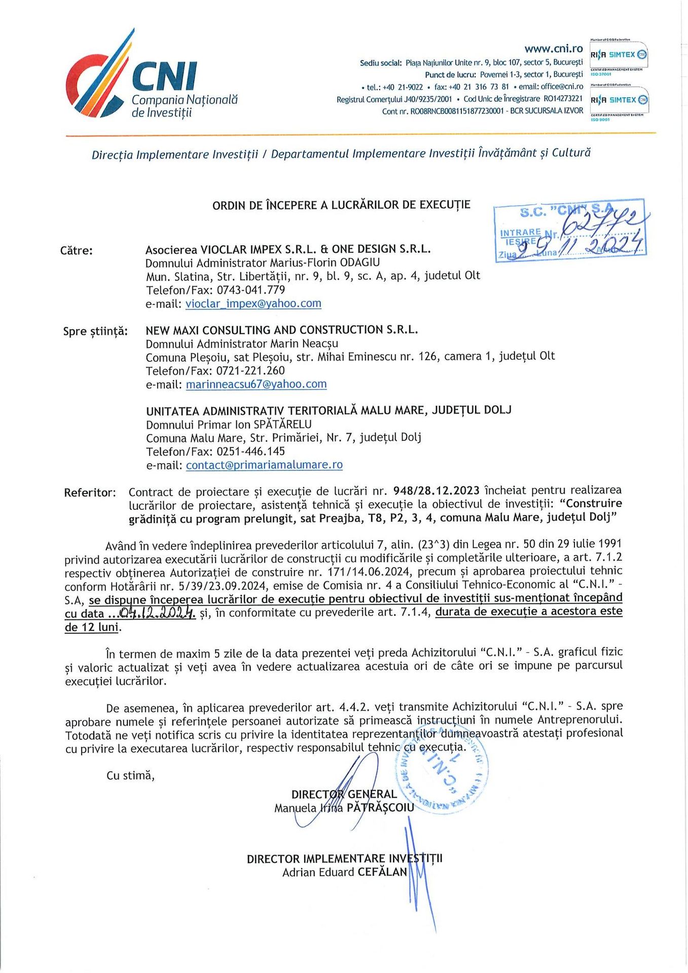 Anunt incepere lucrari construire gradinita cu program prelungit