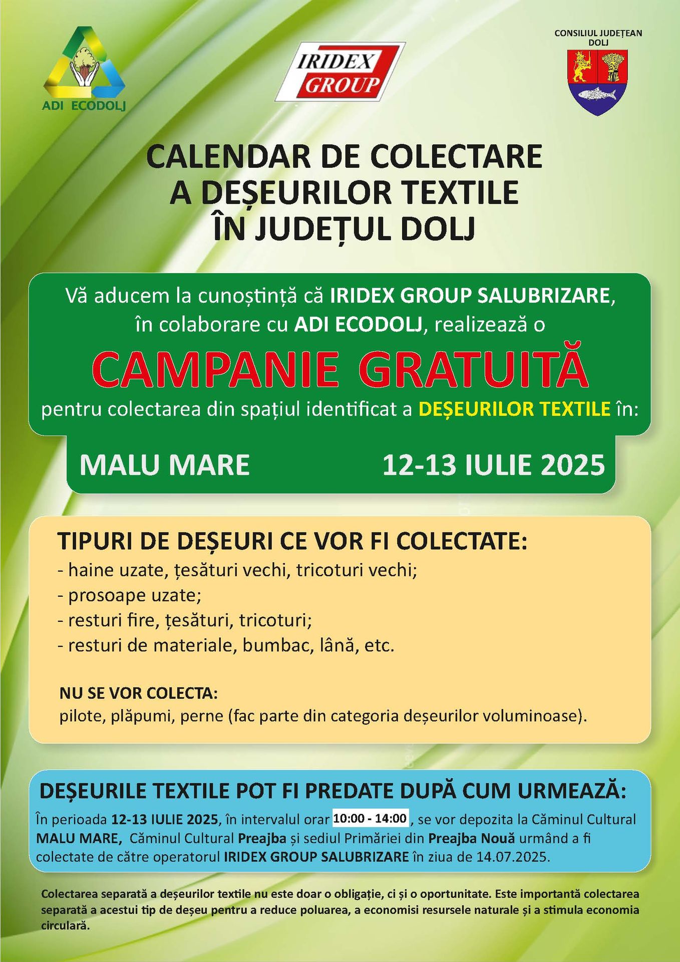 CALENDAR DE COLECTARE A DEȘEURILOR TEXTILE ÎN COMUNA MALU MARE