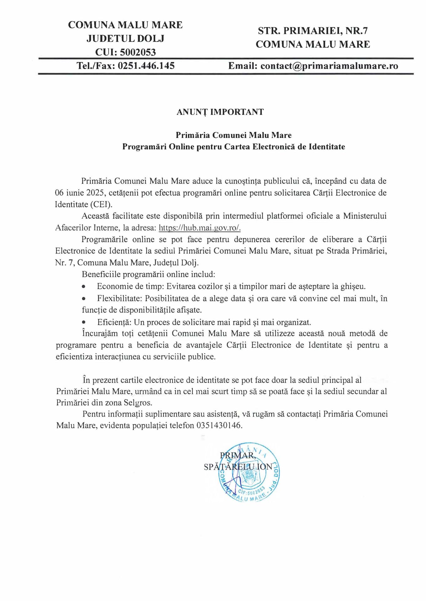 Primăria Comunei Malu Mare ©